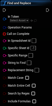 Finds StringToFind and replaces it with ReplacementString in the specified spreadsheet, optionally limiting the operation to a specific sheet and range.