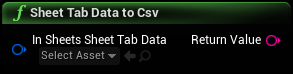 A UGoogleSheetsObjectSheet Tab Data Object containing the data you wish to write. You can create a UGoogleSheetsObjectSheet Tab Data Object by calling CreateNewSheetTabDataObjectFrom2dStringArray or CreateNewBlankSheetTabDataObject the add values to it with AppendStringValues. |